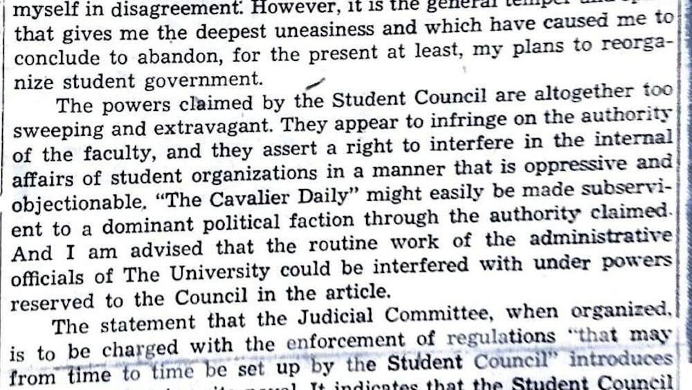 By Justice Menzel and Gillian Sullivan | 11 hours agoThis article describes when Dean B. F. D. Runk sent a letter to each fraternity house restricting parties to invited guests only, following disturbances in the Rugby Road-Madison Lane area.