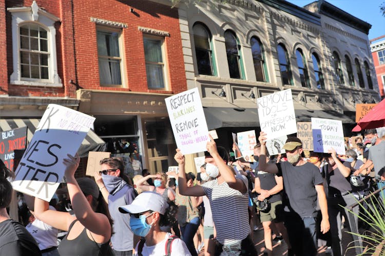 An estimated 1,000 students and Charlottesville community members peacefully marched from downtown to the Rotunda Sunday evening calling for the removal of Confederate monuments in Charlottesville and to honor the lives of Black people who have been killed by police brutality in the U.S. — including George Floyd, an African American man who was killed in Minneapolis May 25 after a white police officer knelt on his neck for more than eight minutes — and Breonna Taylor, an African American woman who was killed in her apartment in March by Louisville Police during a no-knock warrant.