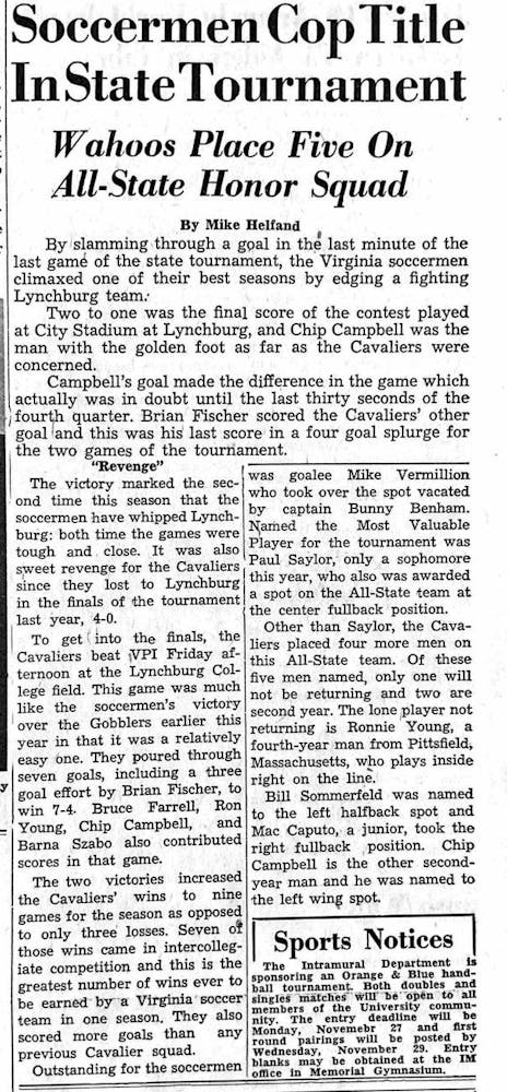 This week’s From the Archives looks at University fall sports’ postseason play throughout the years. These articles showcase the successful seasons and postseasons of many fall sports, including men’s soccer, women’s soccer, field hockey, cross country and volleyball. The teams competed in both the ACC and NCAA championships, demonstrating the University’s athletic achievements at the regional and national level.