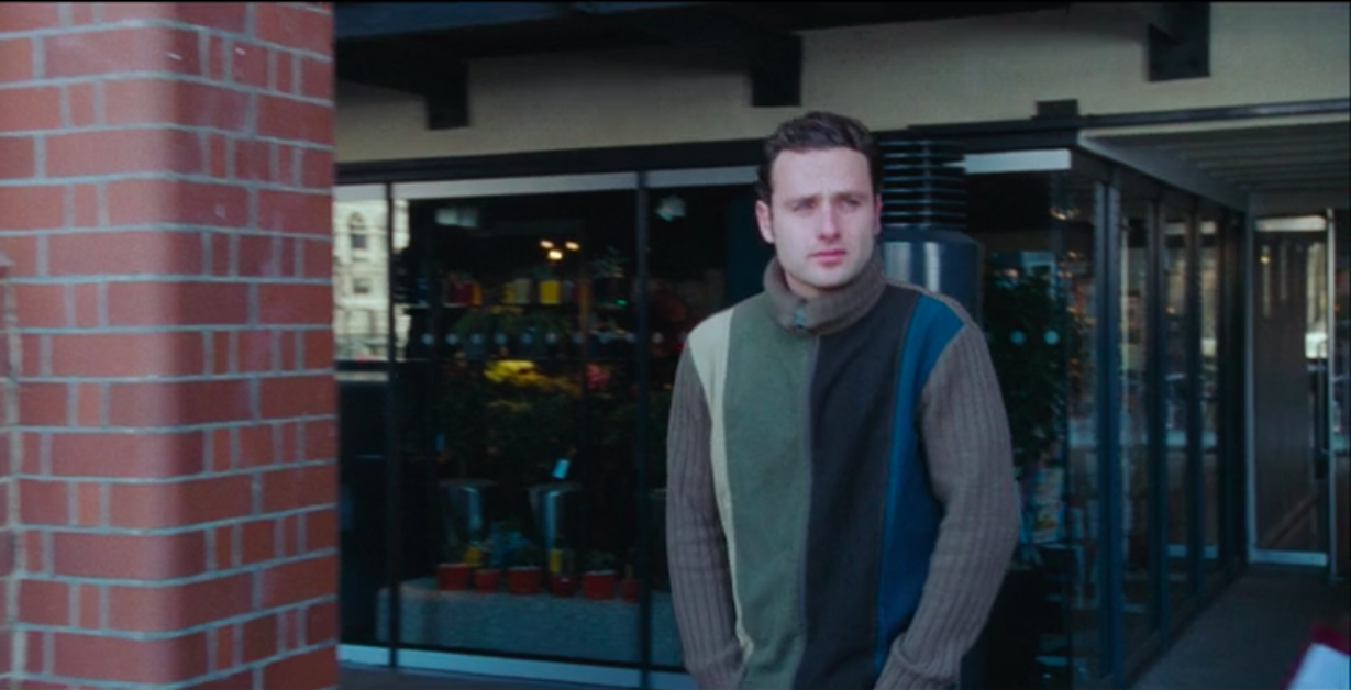 After accidentally revealing to his newly-married best friend’s wife that he may be in love with her, Mark, played by Andrew Lincoln, takes an angsty stroll through the streets of London to wallow in regret of the last hour.