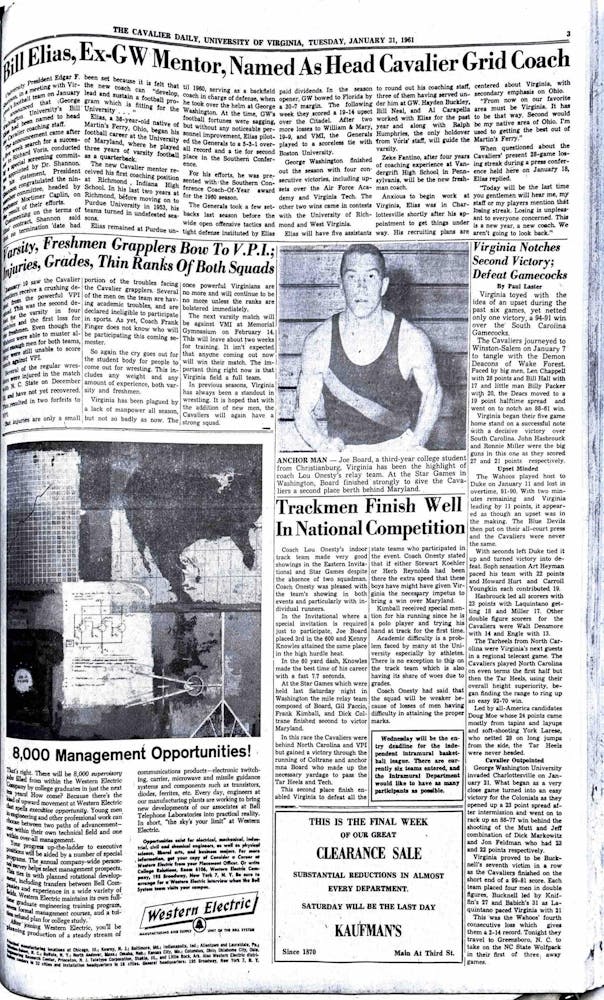 This week, catch a glimpse into the sports culture of the past. With Virginia basketball on its way to greatness and winter sports in full swing, take a look at the victories and defeats of earlier athletic programs. From ice hockey to wrestling, Virginia sports reporting captures both the excitement of the game and the unbeatable dedication of the student body.