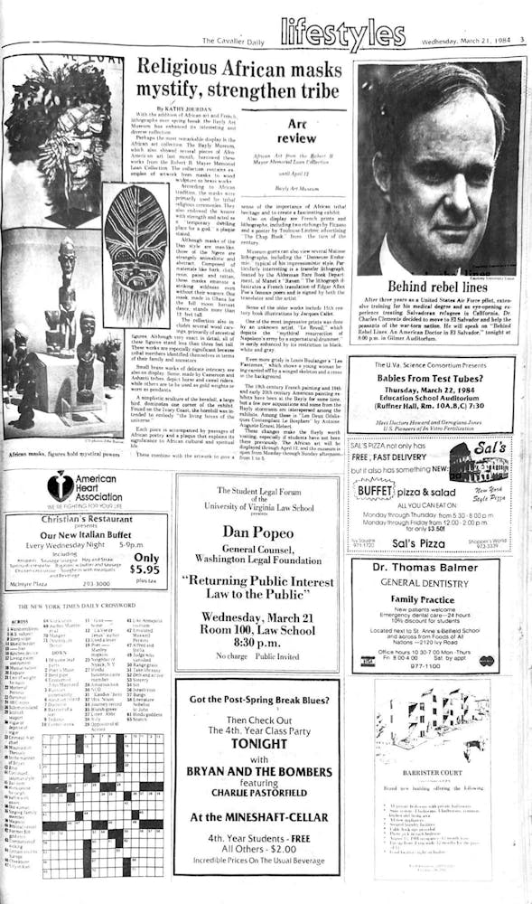 In 1984, a new addition to the Bayly Art Museum, now the Fralin Museum of Art, included an African art collection. Pieces in this collection included masks for religious tribal ceremonies, wood carvings of ancestral figures and more. Along with each display was a piece of African poetry and a description of the pieces’ cultural significance.