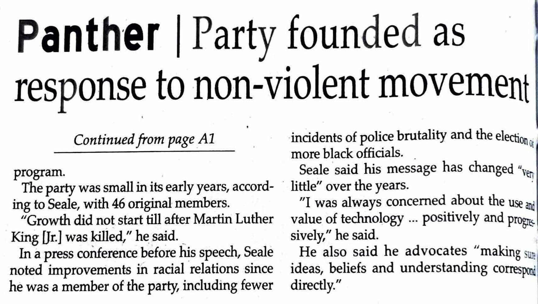 Bobby Seale, co-founder of the Black Panther Party, delivered a speech called “The History and Impacts of the Black Panther Party.” This speech was one of the celebrations hosted at the University in honor of Black History Month.