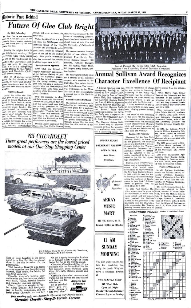 This week’s “From the Archives” looks back at various events held by students, the University and other organizations on and off Grounds. These articles represent the wide variety of events available to University students – ranging from photography contests, Glee Club concerts or Girl Scout slumber parties.