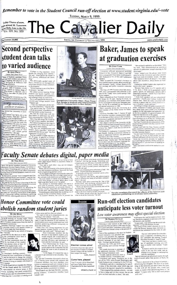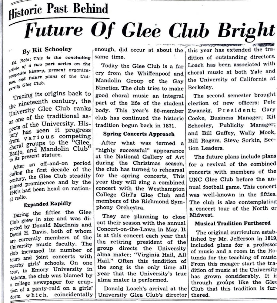 The University’s oldest musical organization, the Glee Club, began rehearsals for the spring concerts after an impressive performance at the National Gallery of Art. In an attempt to make ensemble music a fundamental part of student life both at the University and beyond, the club planned its production of the University’s alma mater “Virginia Hail, All Hail” at the annual Concert-on-the-Lawn and scheduled combined concerts with the Richmond Symphony Orchestra and the UNC Glee Club, among other schools.