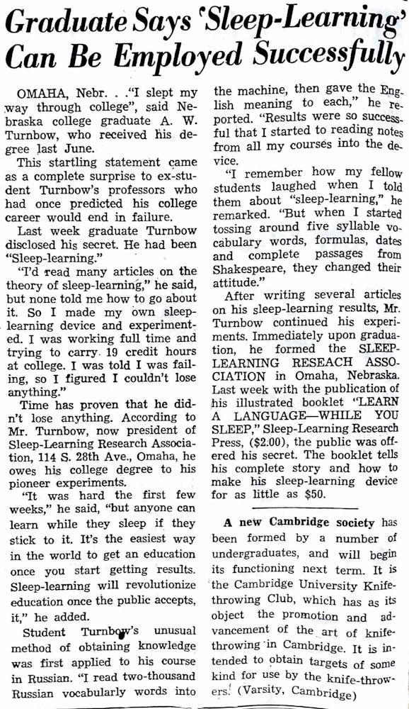 “Graduate Says ‘Sleep-Learning’ Can Be Employed Successfully”
