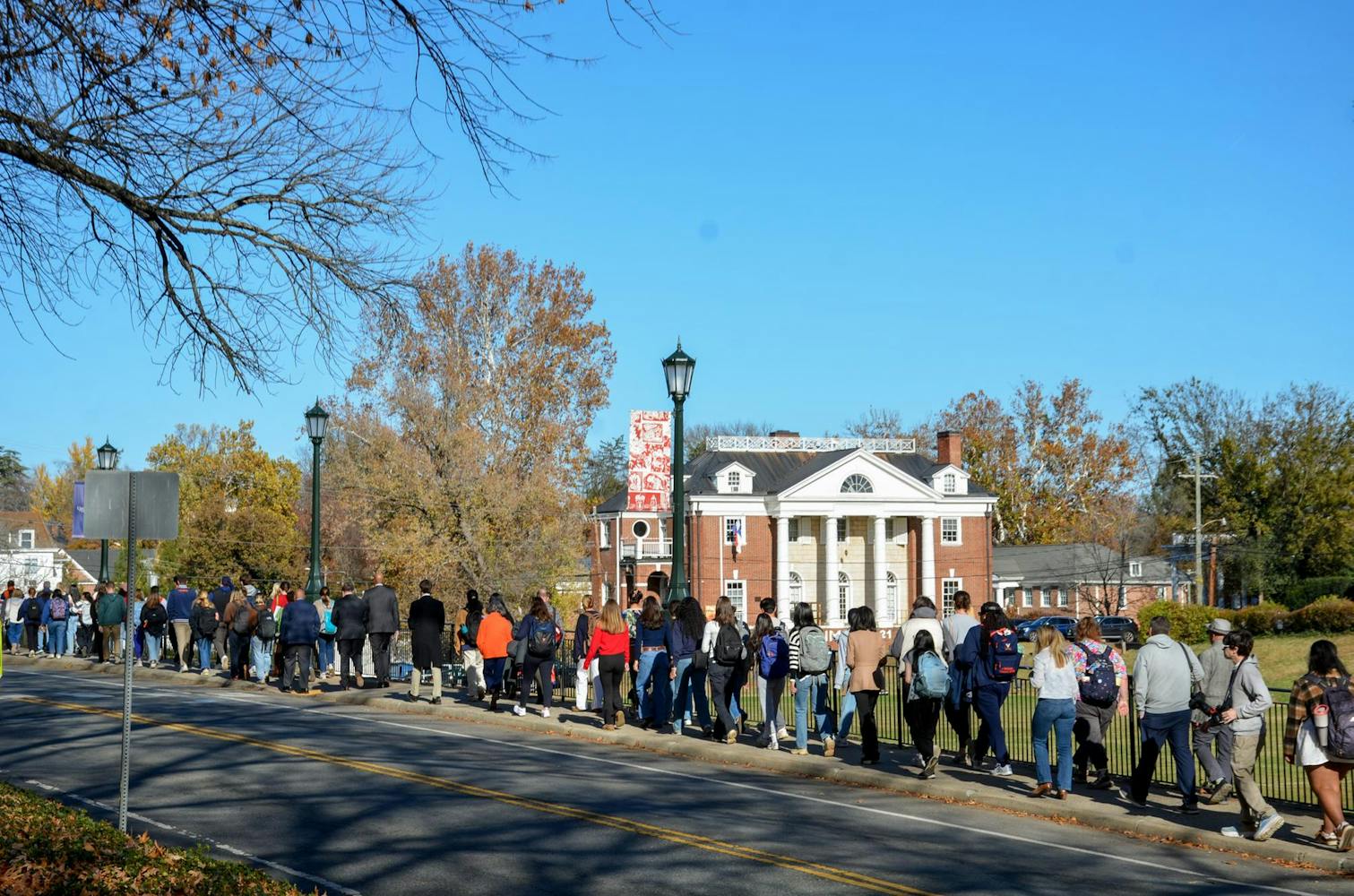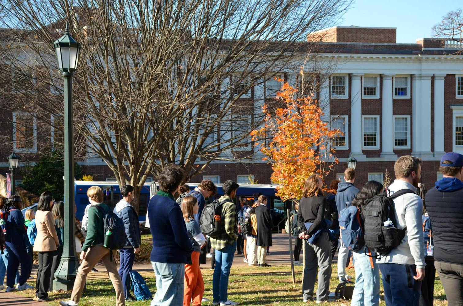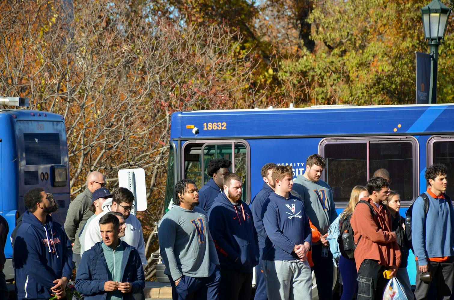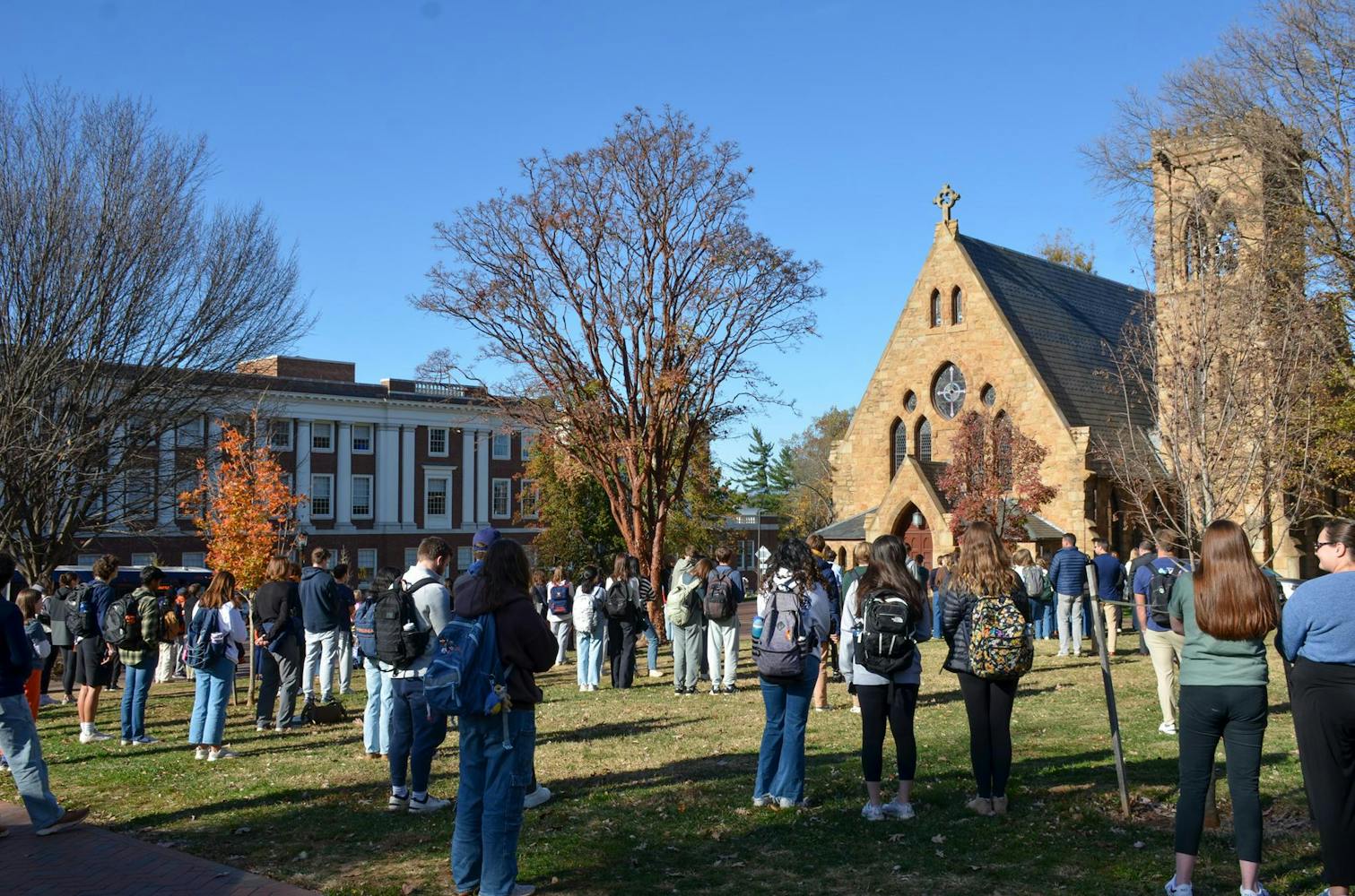 At 1:55 p.m. on Thursday, Nov. 13, the University Chapel bells played the first verse of “Amazing Grace” before ringing the three final chimes, honoring the lives of Lavel Davis Jr., D’Sean Perry and Devin Chandler who were killed during the University shooting three years ago. Immediately after the bell toll, attendees began a memorial march from the Chapel to the memorial tree at the Betsy and John Casteen Arts Grounds, near where the tragic shooting took place three years ago, for a remembrance ceremony.
