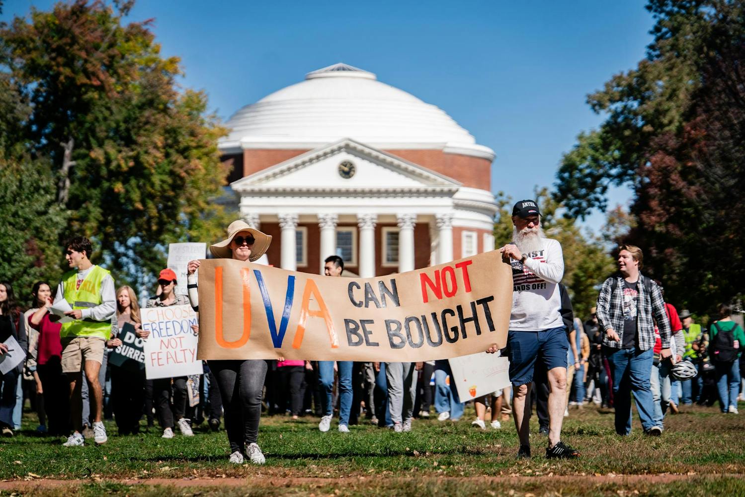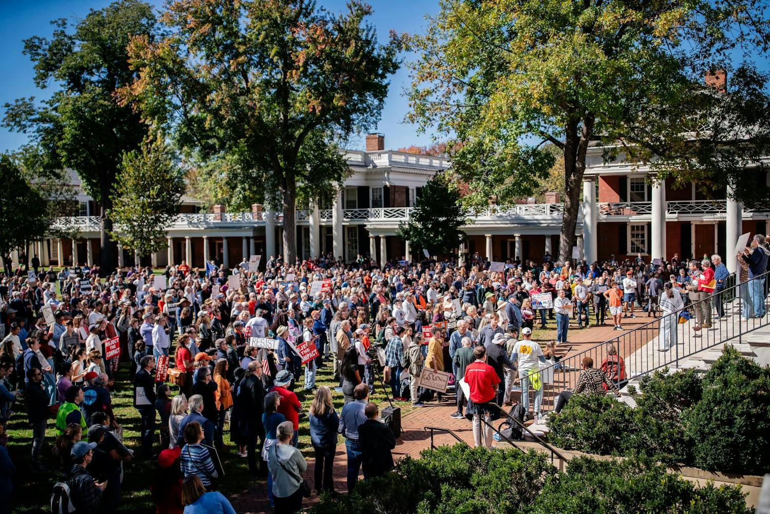Students, faculty, staff and community members gathered on the Lawn Friday to urge the University to reject the proposed Trump administration’s “Compact for Academic Excellence in Higher Education.” Friday evening, the University announced that it would formally reject the Compact.