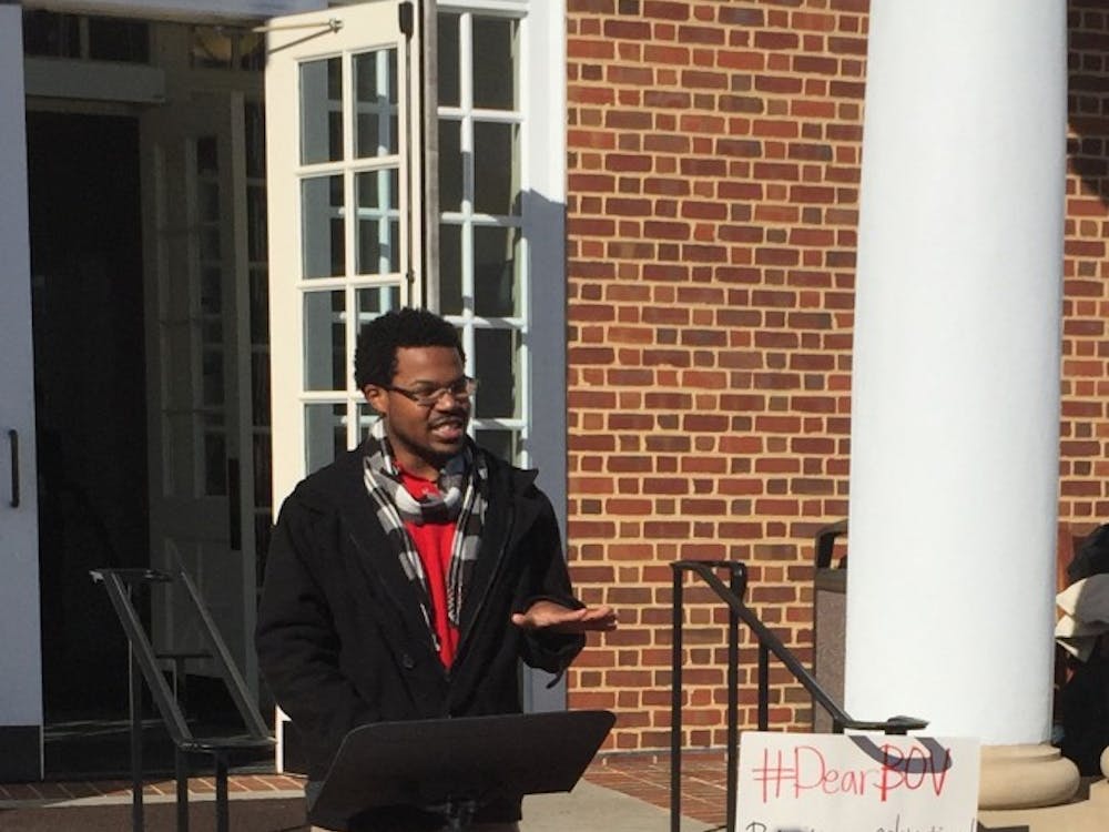 By Clara Carlson | November 17, 2014University students and Charlottesville community members gathered Friday outside of the Board of Visitors meeting to hold a mock public commentary called #DearBOV to advocate for a public comment period during Board meetings.