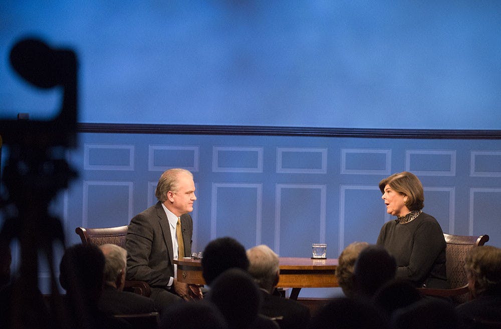 Former ABC News White House correspondent Ann Compton delivered a lecture at the Miller Center on Tuesday evening as part of its annual American Forum program, discussing her years covering Washington politics and the relationship between the government and media.