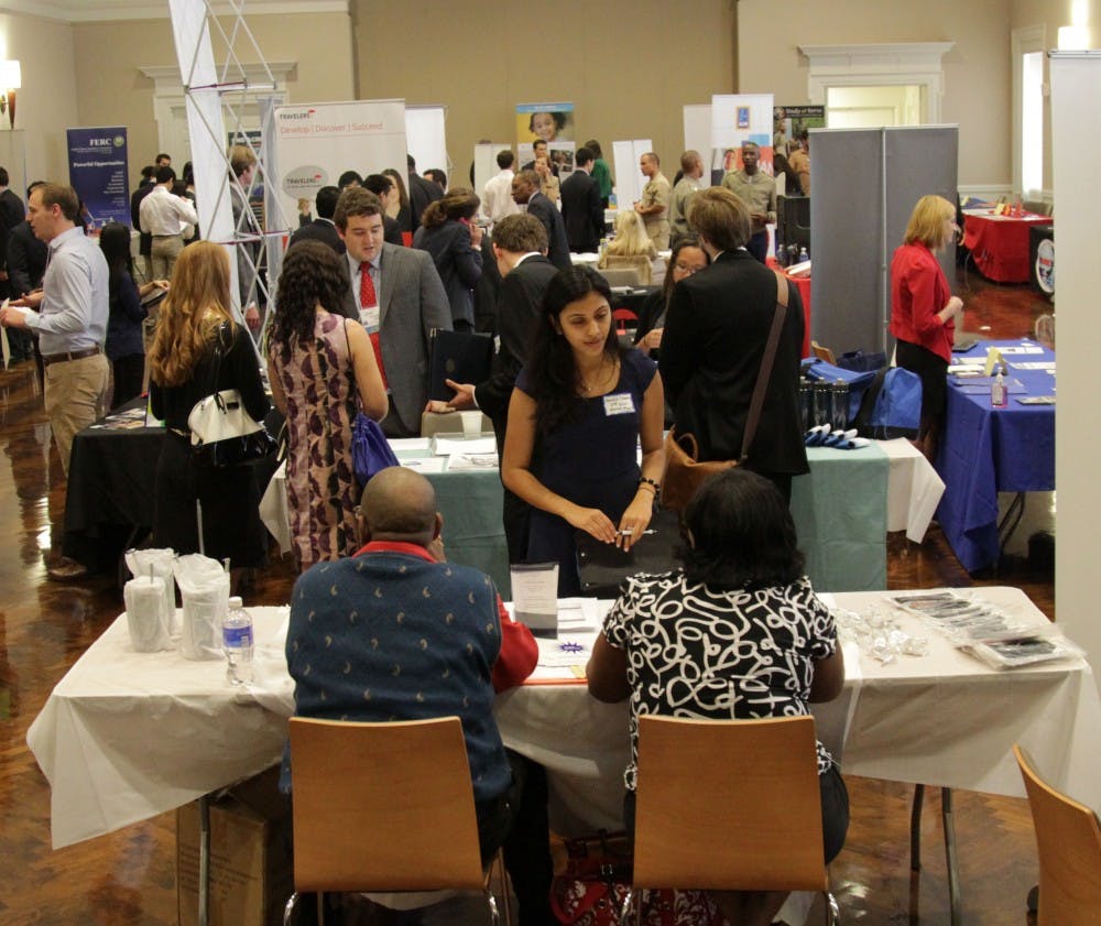 Hundreds of students clad in business attire gathered on the third floor of Newcomb Hall Wednesday to meet with recruiters from 130 organizations at the Fall Job and Internship Fair.