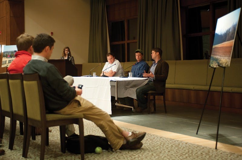 [caption id="attachment_41655" align="alignleft" width="300" caption="Representatives from the Local Food Hub led a panel on local dining last night.