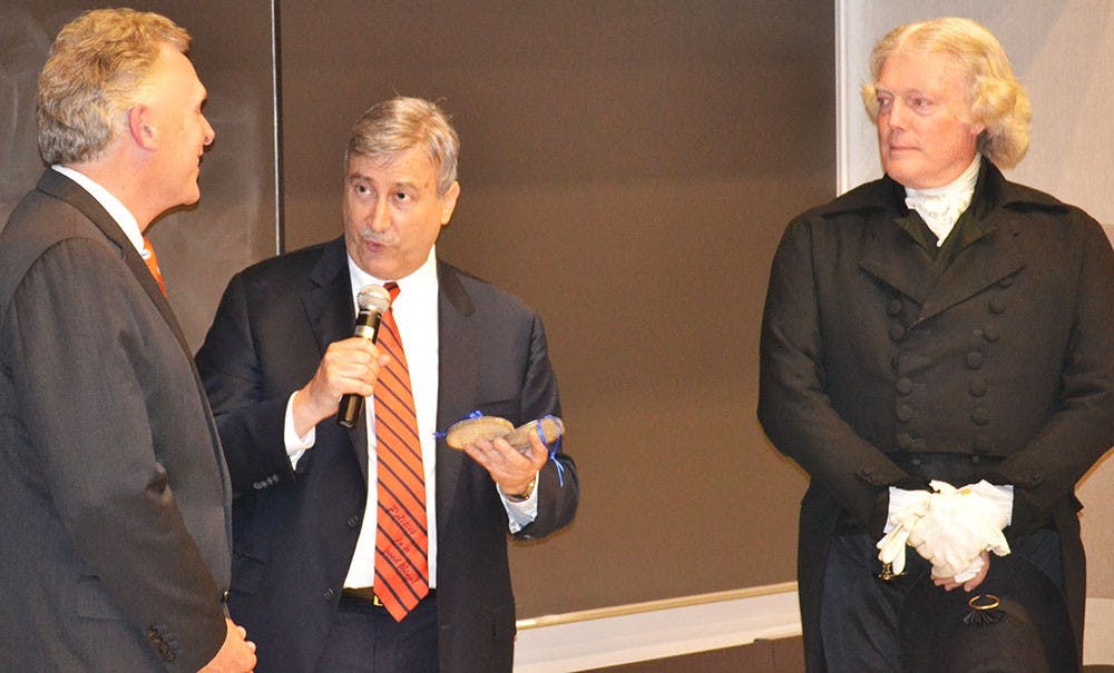 Gov. Terry McAuliffe visited Politics Prof. Larry Sabato’s Introduction to American Politics class Tuesday afternoon, marking Sabato’s last introductory politics lecture after 35 years. McAuliffe is among a long line of prominent policymakers to speak in Sabato’s class, including numerous presidents, senators and governors.