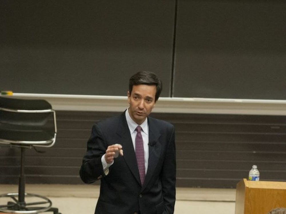 By Maggie Ambrose | April 1, 2013Former Puerto Rico Gov. Luis Fortuño about the need for the Republican party to make itself more attractive to Hispanic voters, especially after Romney’s loss in the 2012 election, in Politics Prof. Larry Sabato’s class on Monday. Fortuño showed slides with headings like “The Latino Problem,” which he recently used in a presentation to Republican leaders in Congress. His presentation addressed data from Hispanic voters in the 2012 election, which showed the feeling that the GOP does not respect the values and concerns of Hispanics.