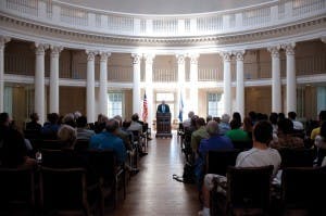Irish Ambassador Michael Collins spoke to University community members in the Rotunda Dome Room yesterday afternoon about Ireland's weakened economy, which state leaders hope will improve through reduced deficit spending. He opened the talk by emphasizing the connection between Ireland and the University, and addressed Thomas Jefferson's influence on Ireland. "Jefferson never had [an] opportunity to travel to Ireland, but his ideas did," Collins said.