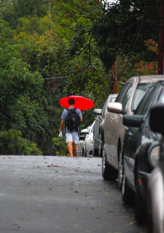 [caption id="attachment_44499" align="alignleft" width="211" caption="Members of the University community shielded themselves from rain and wind Saturday as Hurricane Irene made its way up the East Coast during the weekend.