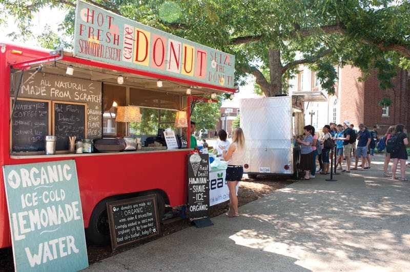 [caption id="attachment_44567" align="alignleft" width="300" caption="Students lined up at the food trucks located by the Amphitheater during lunch time.