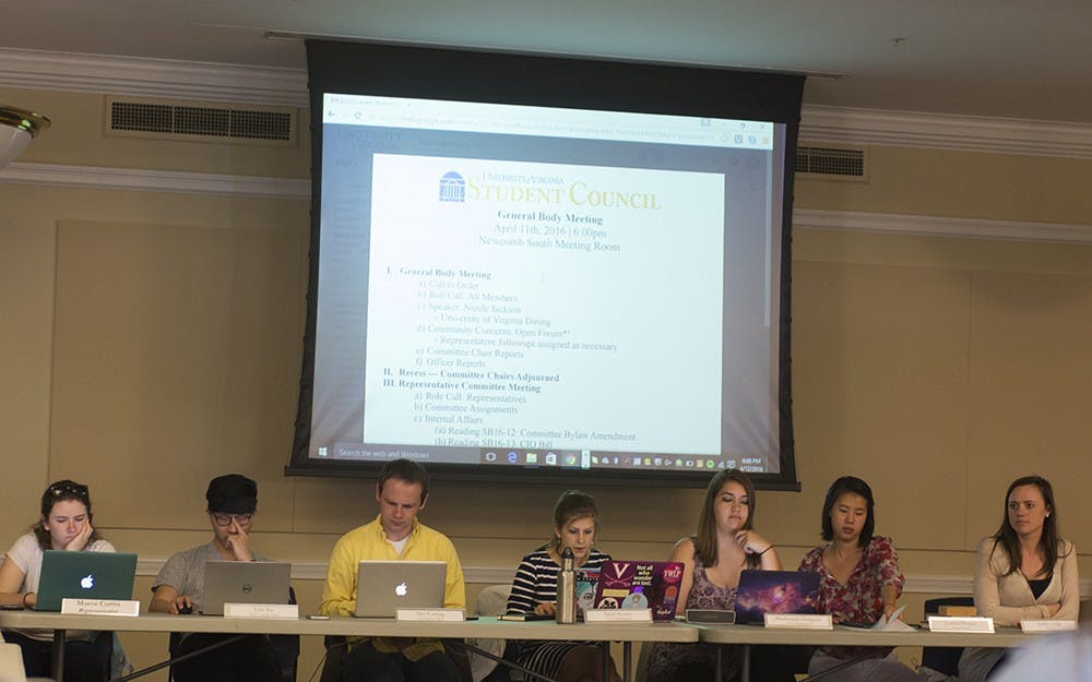 Student Council President Emily Lodge, a third-year Batten student, led Tuesday's meeting in which the council reconsidered the DREAMers on Grounds application for CIO status.